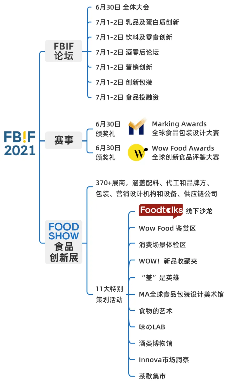 为期3天的论坛将从行业战略、产品、营销、包装、投融资不同角度讨论行业趋势及创新案例,170+位嘉宾将带来110+场演讲及互动分享,还包含两大赛事颁奖礼挖掘并褒奖行业创新。同期20000㎡的Food Show食品创新展将呈现11大主题活动及370+展商。