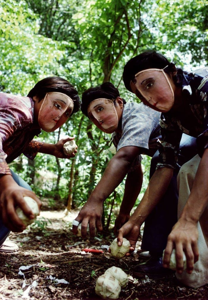 “照片是在尼加拉瓜的马萨亚拍的,正值索摩查独裁政府刚刚被暴动推翻的时候。这个原住民群体,用传统的舞蹈面具来维系他们的身份认同,用自制的炸弹来抵御未来可能的袭击。他们只是想让这个世界知道发生了什么,而在照片里的情境中,我始终是矛盾的。我从未以一个描绘者的身份来看待自己,更多的,我希望自己能够通过不断沉浸于拍摄对象的世界,来建立连结。”
