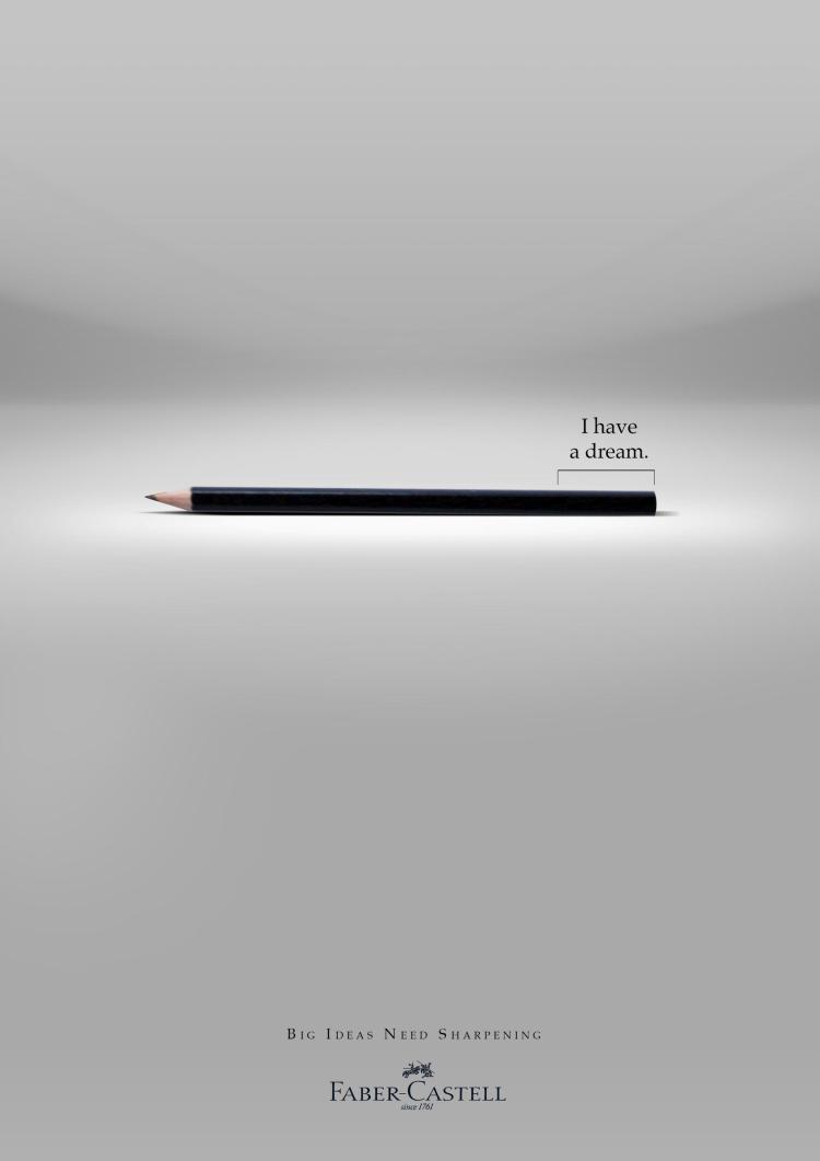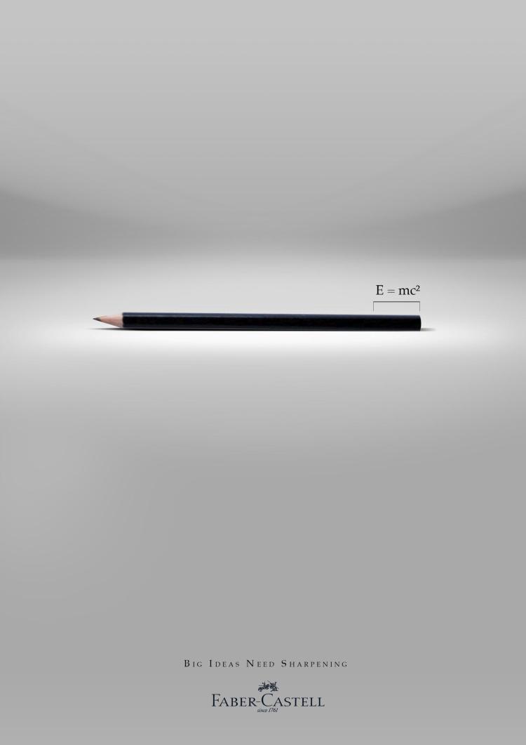 文案只得一句:伟大的想法需要经过打磨。Sharpening在这里也算是玩了一个双关,既说清了铅笔需要常常“打磨”(也就是“削”)才能保持锋利之外,更说明了好创意来之不易,需要细细打磨,颇有一种慢工出细活的禅意。