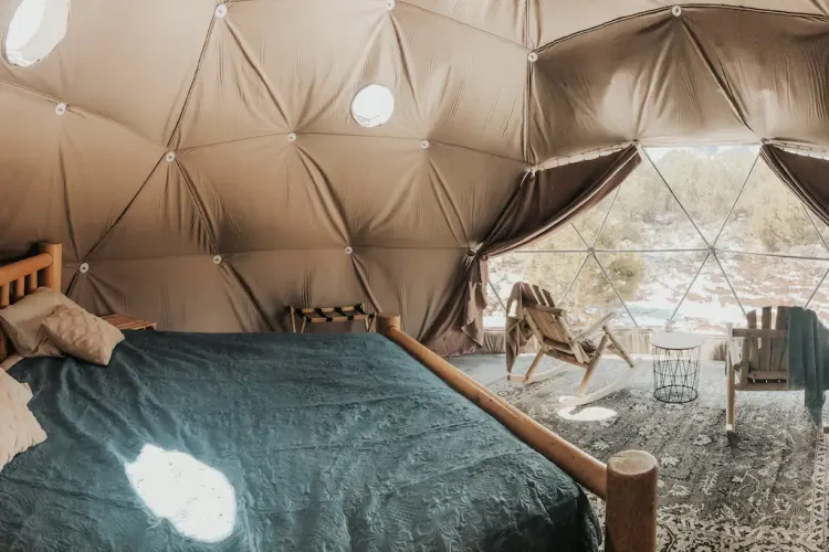 这个圆顶小屋隐藏在一个安静的白杨林中,可以360度欣赏落基山脉,感受山峦的美妙。既然都来到野外,不如就放松自己,多去参加一些诸如钓鱼、徒步、山地自行车和越野等户外运动,感受另外一番情趣。对了,如果你家有汪星人的话,记得也带上它,这里还为它们准备了一个小院,让它们可以肆意奔跑玩耍。