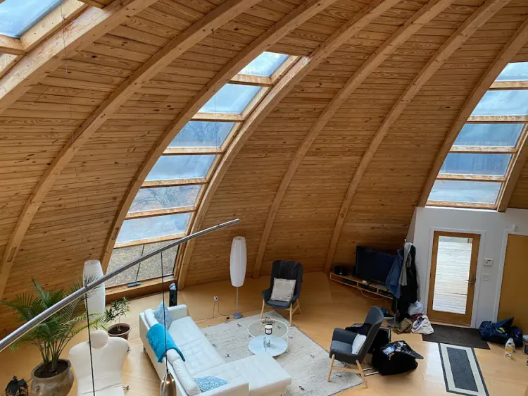 这座世外桃源距离河边、当地酿酒厂以及海岸线都只有几分钟距离,穹顶配有天窗和两层观星台,让你亲近自然。当然,如果你想在星河之下写作或者看电影,也不是不行。这座民宿还配有工作台与投影仪,让你工作生活两不误。
