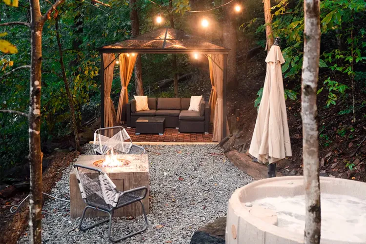 最让我动心的是户外的热水浴缸、烧烤台与天棚,让你在森林里也可以尽享舒适。这座建筑的设计和建造愿景是简单而舒适的生活,努力建立与自然的深层联系,并在地球上留下最小的痕迹——全环保,不污染。