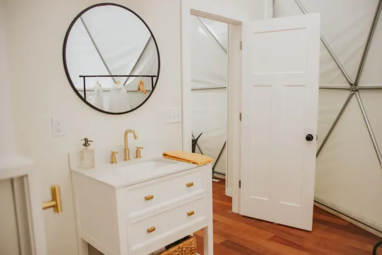 像极了游牧民族常用的圆顶帐篷,不过用一抹明黄色点亮。矗立在国家公园当中,远离都市的喧嚣、灰尘与光污染,在这座现代波西米亚式的小屋中重新获取自然的能量。