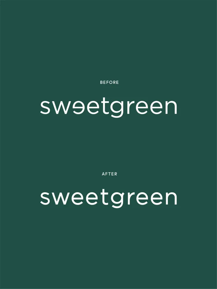 Sweetgreen的新字体灵感来源于洛杉矶各处常见的标牌字体,而Sweetgreen的总部正好就是在洛杉矶,于是柯林斯公司和字体公司MCKL Type以此为灵感合作制成了SweetSans字体。另一款新字体SweetFace则是在字体公司Colophon所设计的Grenette字体的基础上演变而来。柯林斯公司称这套新字体是“旧式衬线字体与当代品牌的全新想象,会让人们想起来厨师食谱中的独特排版与手写字体。” 新字体在字母组合与文字标记上表现得更轻松、大胆。