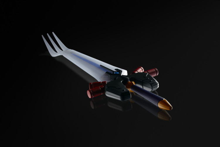 这是经典游戏《最终幻想》30周年时,日清与之合作推出的特别周边——一把以究极神兵(Ultima Weapon)为设计灵感的巨型叉子……