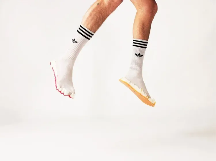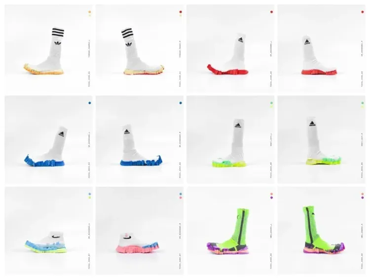 “像素鞋”是利用PU泡沫浇铸速度和可塑性,在短短几分钟内,即可根据人的脚型精确成型,以五彩缤纷的颜色融和到袜子上,路人就会得到一双经济实惠的符合人体工学的鞋子。