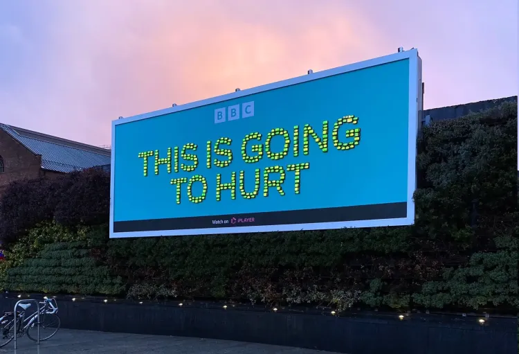 说实话,我第一眼看见这块广告牌的时候,还真没认出来上面写的是《疼痛难免》的原剧名“This is going to hurt”。这可不怪我啊,众所周知,医生的“鬼画符”字体真的很难辨认,大多是缩写、术语,如拉丁文简写的药名。