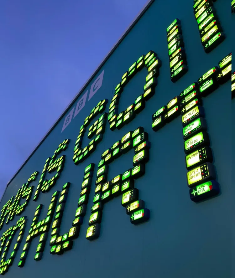 而早在今年2月剧集刚上线的时候,BBC Creative则用了LED灯和扬声器所模拟的传呼机组成了剧名,当夜幕降临时,荧幕还会发出荧光黄、绿色的光,字体看起来显眼、突兀,从视觉给人一种紧张感。