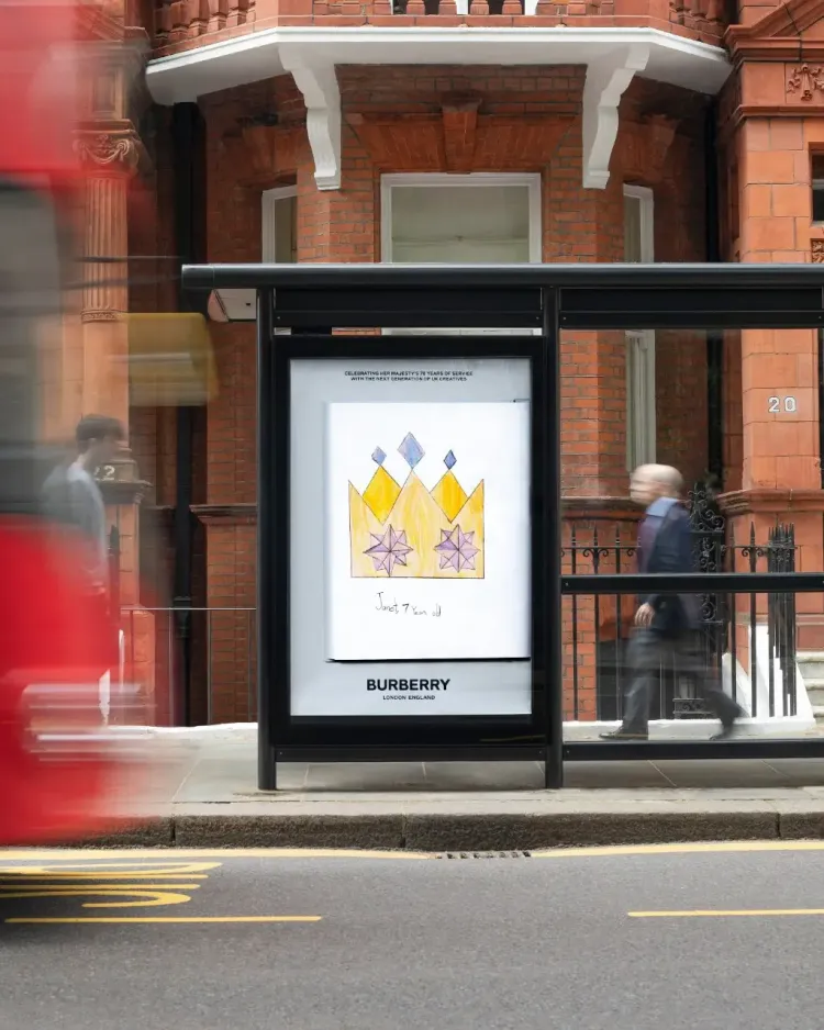 此外,儿童公益也是博柏利此次白金禧庆祝活动的着眼点,博柏利请来孩子们为女王创作,并在威斯敏斯特自治市多达80多个公交站投放了这些儿童绘画作品,用英国下一代创作者的灵感为女王庆祝。
