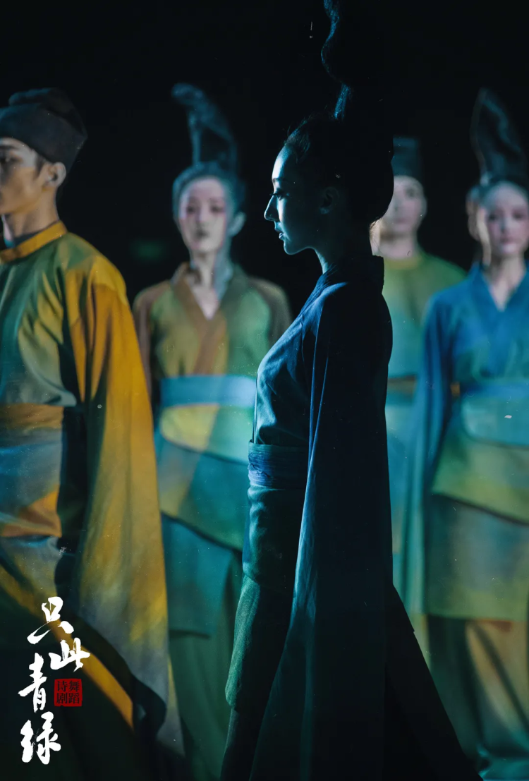 阳东霖:其实这就是舞台戏剧的魅力, 它能够给人一个很大的想象、思考空间。譬如说在做影视剧时,有可能我们还需要相对传统一些,因为我们在讲述这段历史,不能去误导观众。但更多舞台艺术的题材,讲故事的同时也在抒情。我们在抒发情感,在讲一个情绪,譬如说我们看到的青绿舞段,它未必一定是宋代的某一个人,但它代表的是我对宋代的一个感受。我对于宋代《千里江山图》这幅画的感受。