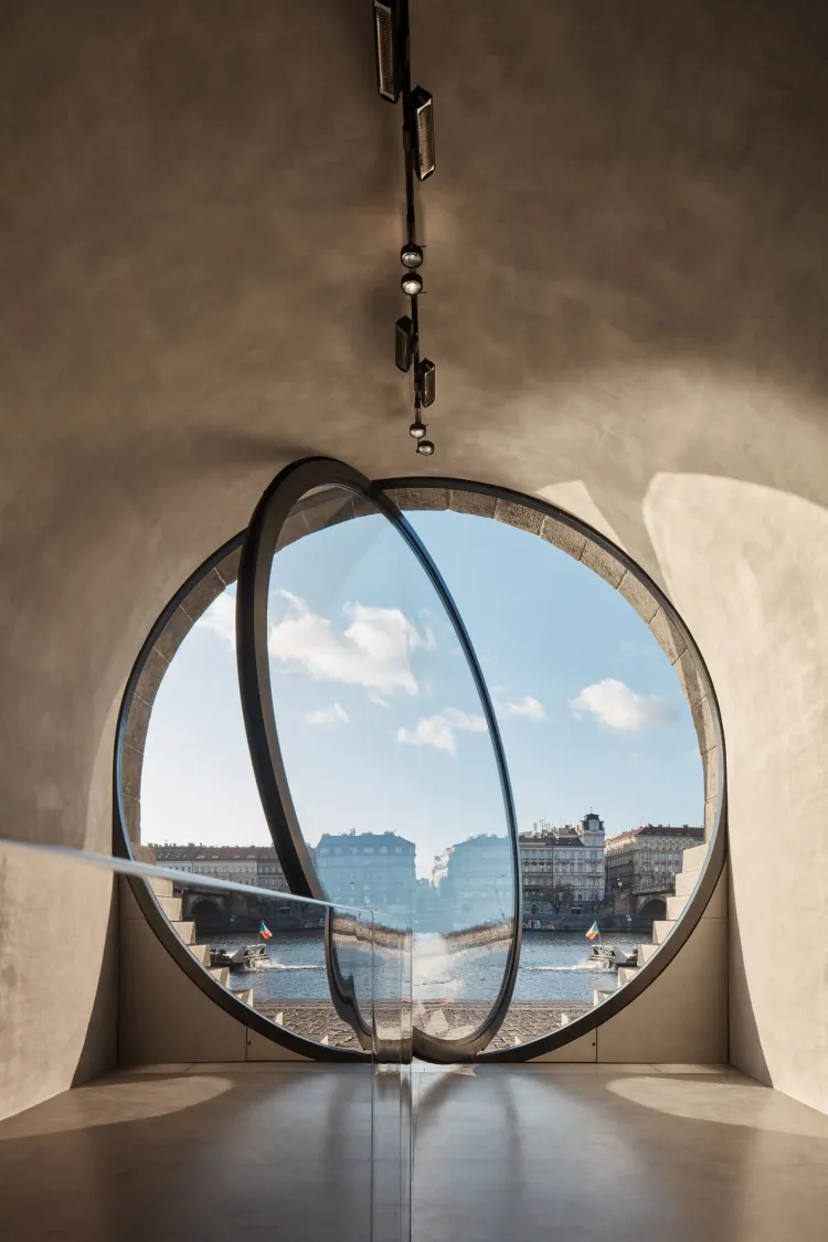 伏尔塔瓦尔河 (Vltava)在脚边缓慢流淌,河岸上的建筑物比肩而立,庄严而肃穆。设计师既不想打破这种神圣感,又不想让整个城市空间死气沉沉,于是打起了桥洞的主意。他希望能在整个河岸上,嵌入一些功能性空间,使得人、河流以及公共空间能产生互动于连结,而不是一个个独立的个体,于是对桥下的20个球形空间进行改造复兴,于是就有了河岸边的咖啡厅、工作室、俱乐部、工作坊、画廊、图书馆分馆、邻里聚会空间和公共卫生间。