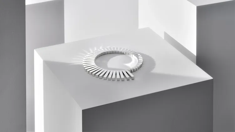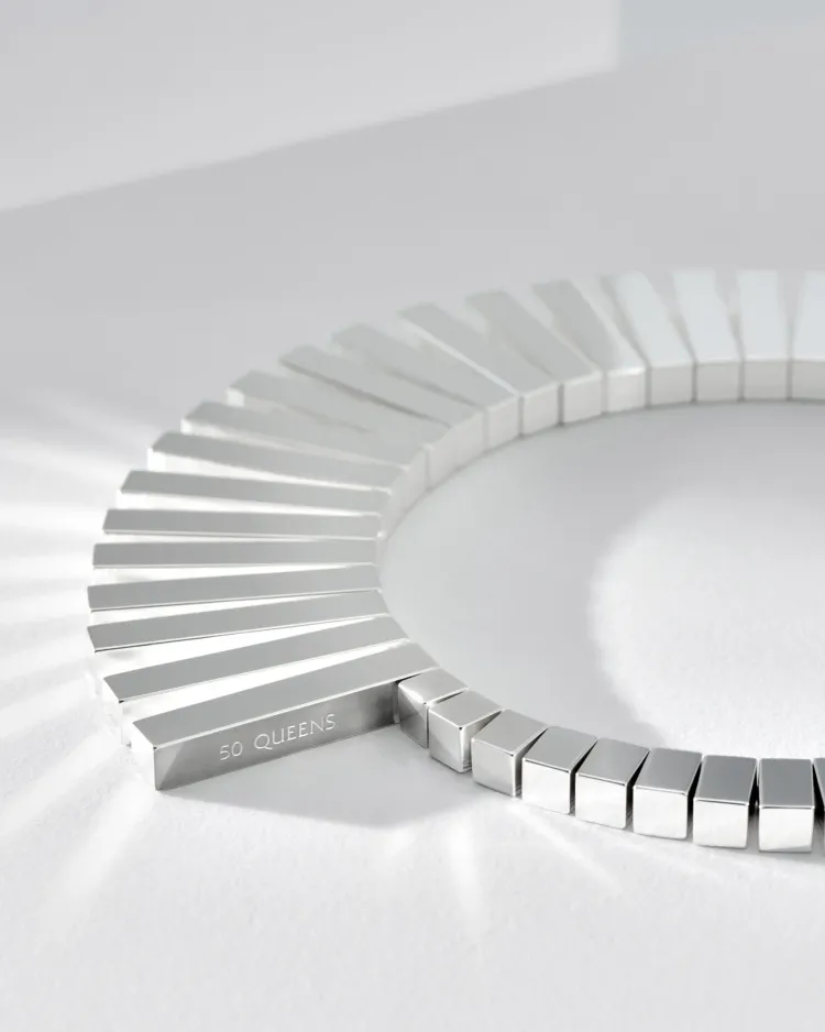 此次纪念活动将持续到今年9月18日,在展览期间,国王新广场被重新命名为“女王广场”(Dronningens Nytorv),BIG工作室还与珠宝公司Georg Jensen合作制作了一条项链送给女王,项链的设计正是50个底座的缩微版,由50个纯银块制成。