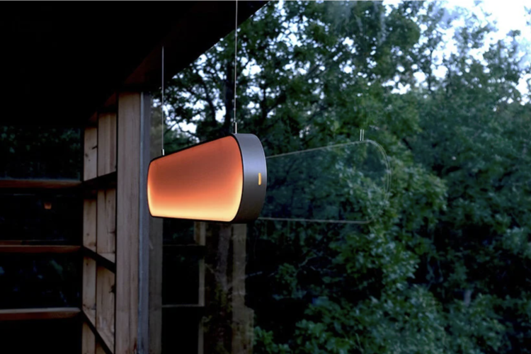 这款吊灯造型简洁优雅,全长85厘米,只需要两根极细的钢丝就可以悬挂在窗边,也无需外接电源。其铝制的曲面设计采用了团队与欧洲绿色能源研究中心ECN.TNO共同研发的太阳能蓄电池,电池在白天收集能量,在日落时分吊灯会自动亮起,除此之外,假如平时需要使用,触碰顶部铝边上的触控键或者使用App操控即可。