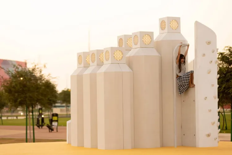 这俨然一个卡塔尔版的民俗村、世界之窗,由英国艺术家Shezad Dawood与卡塔尔建筑师Fatma Al Sehlawi、英国建筑公司Delvendahl Martin合作设计,将首都卡哈的代表性建筑浓缩其中,让孩子能通过日常化、娱乐化的方式建立对其建筑之美的认知。