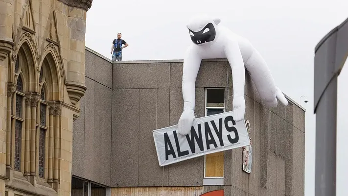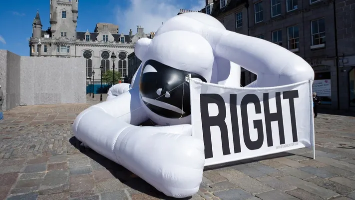 在苏格兰政府组织的Six Cities Design Festival中,主办方提出,希望能有一个不仅仅在设计圈有影响力,还能与公众完成沟通的作品作为宣传载体。于是施德明将6只33英尺高的白色愤怒猴子放置在了爱丁堡、格拉斯哥、阿伯丁等6座城市的市中心。每个猴子都持有一个单词,拆开看平平无奇,但合在一起又充满戏谑,“每个人都觉得它是对的”。