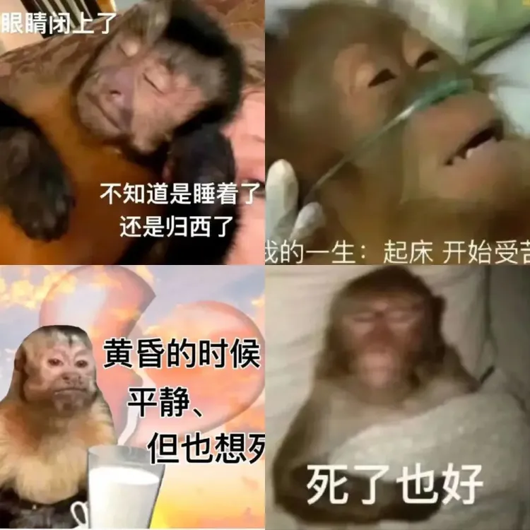 除了听歌猴子,其实也有其他猴子表情的盛行,从心理上来说,似乎是为了给自己的日渐不稳定的精神状态找到一个出口,而且一定得是那种糊到“电子包浆”的才说明用得人越多,也符合大众情绪。