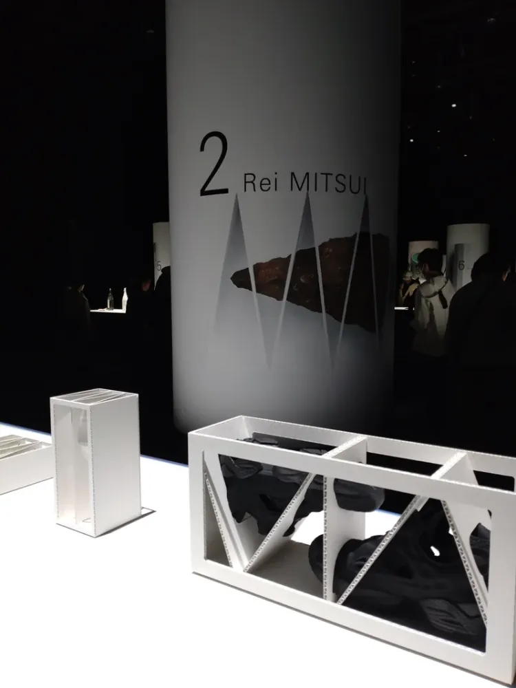身为建筑师的三井嶺决定把包装盒当作一个建筑,在包装盒内置入风琴叶结构,用以妥善包裹、承载盒内物品。官方图片过于抽象了,但在展览现场一看便知实际的效果。