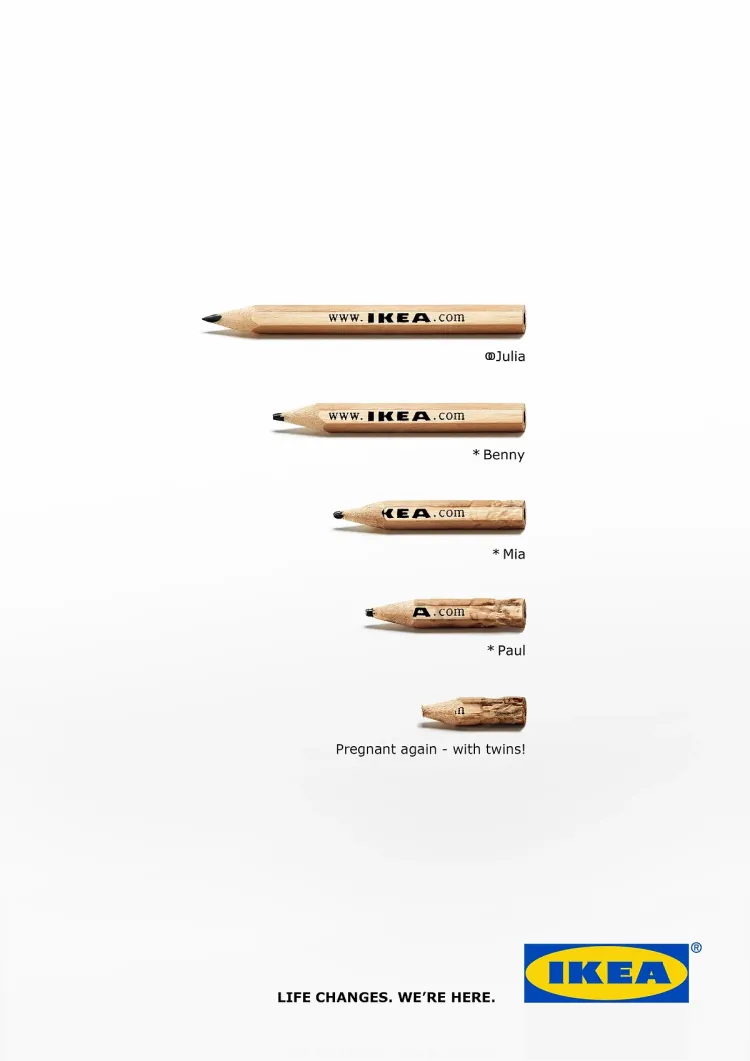 用宜家商场里唾手可得的铅笔衡量一个人的一生时,随着铅笔越来越短,工作生涯的变动和家庭成员增加历历在目。