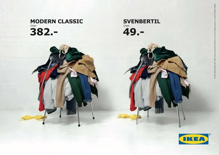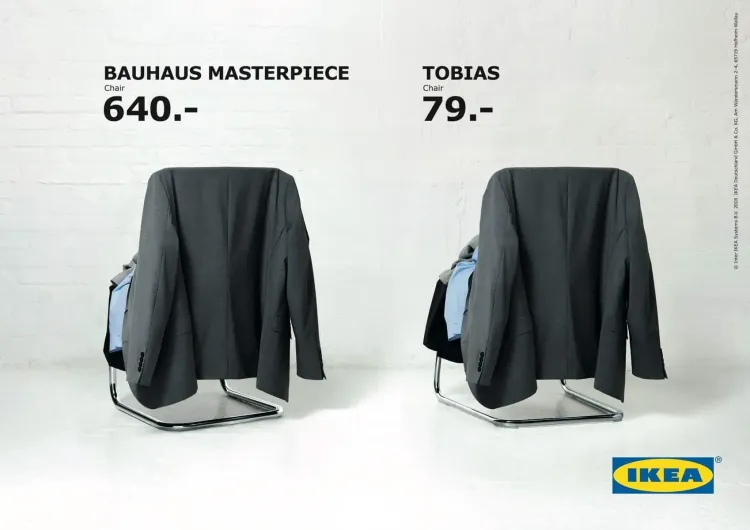 你能看出来下图左右两边的椅子有什么区别吗?无论是包豪斯、中世纪中古、现代经典还是宜家,反正椅子的最终归宿都是堆衣服,还不如买相对更白菜价的。