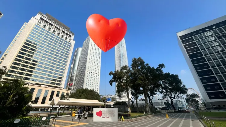 继去年荷兰艺术家Florentijn Hofman的大黄鸭游来港深两地后,今年大湾区上空有一颗胖乎乎的充气红心飘来。