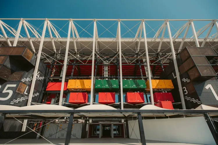 由色彩鲜艳的集装箱组成的974球场就像是一个大型乐高模型,其中设有40000个座位,集装箱自然地划定了把球场重各种不同的功能区,有的集装箱是洗手间,有的是特许经营店铺,有的是包厢……