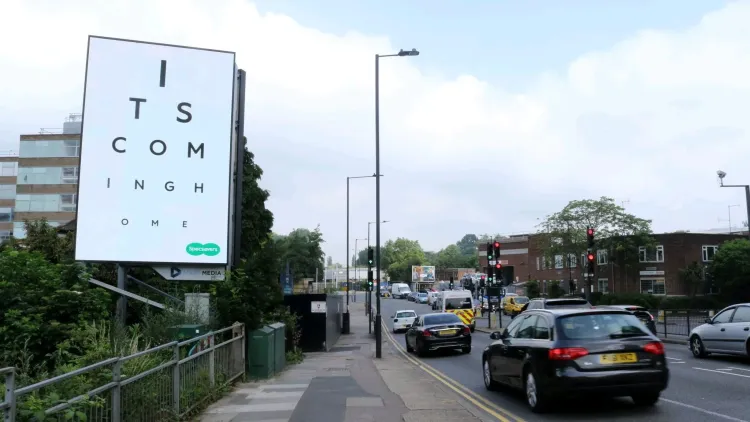 说回Specsavers的户外广告牌,似乎从来就不按理出牌,就是不想让人看清文字,在大街小巷植入各种“视力测试”,广告牌随时都在考考你——