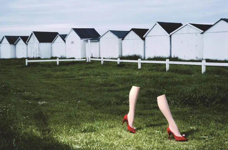 Red Velvet在歌曲《Dumb Dumb》的着装,尤其是各种彩色连裤袜,以及MV的拍摄构图,很容易就会想到颇有争议的时尚摄影师Guy Bourdin的作品。人体的双脚是Guy Bourdin的创作核心,尽管看不到人物有何种表情(有时甚至只是一双假腿模型),但他精心配色和构图赋予双脚的表现力已经营造出诡谲、暗黑的气氛。
