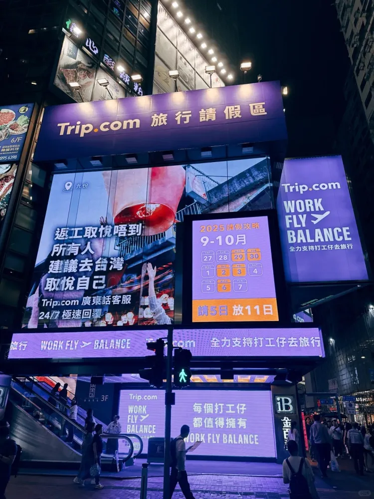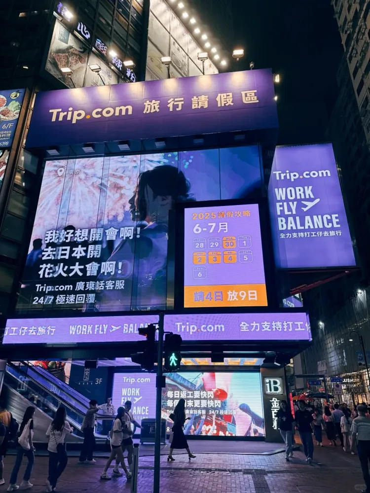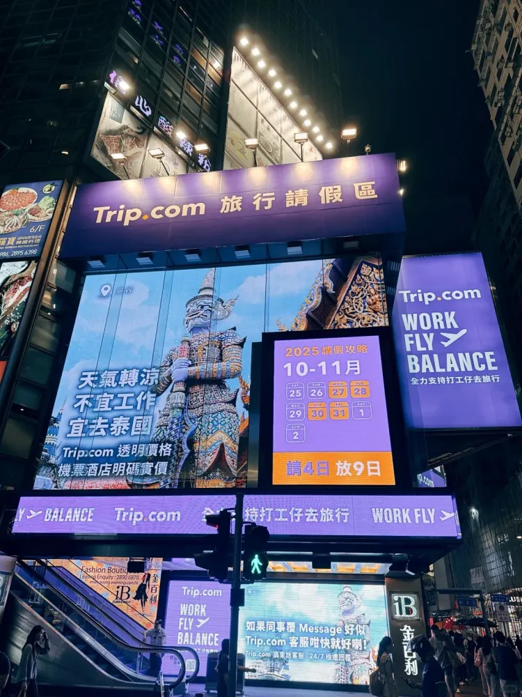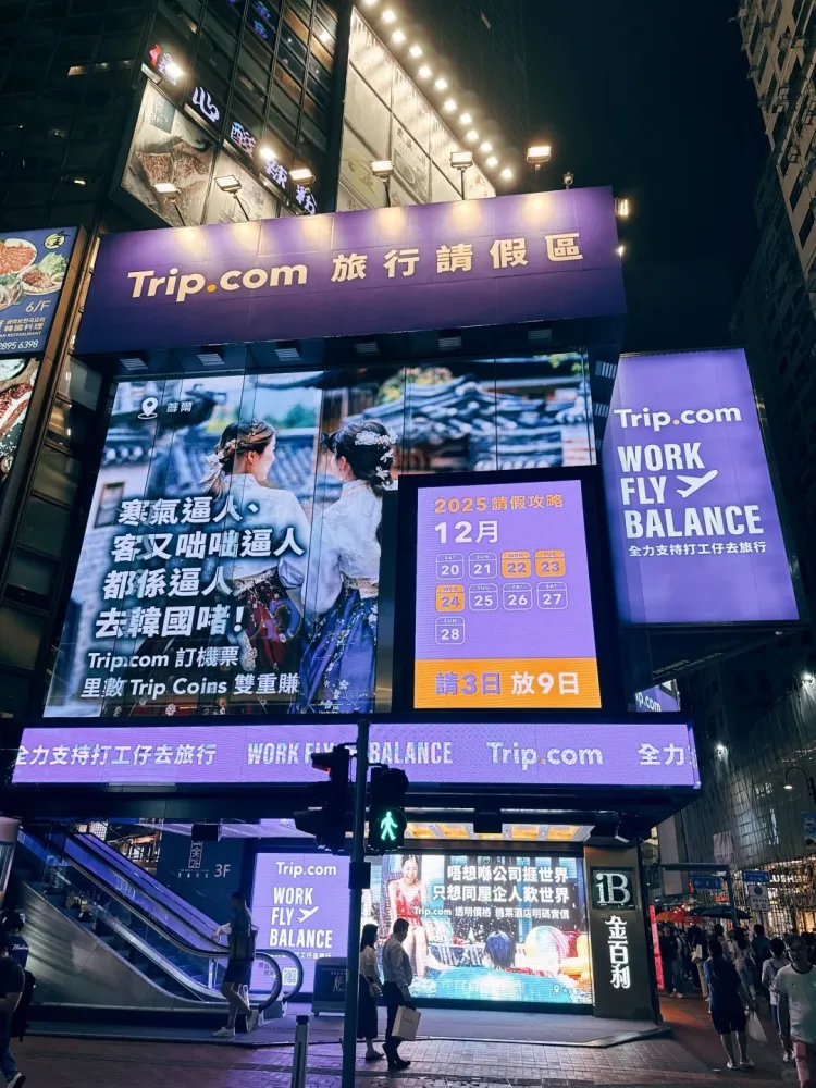 最近携程旗下的海外品牌trip将香港铜锣湾的户外大屏打造为旅行请假区,说出了大家的心里话。投放不过几天,就吸引了大批路人驻足和拍摄。