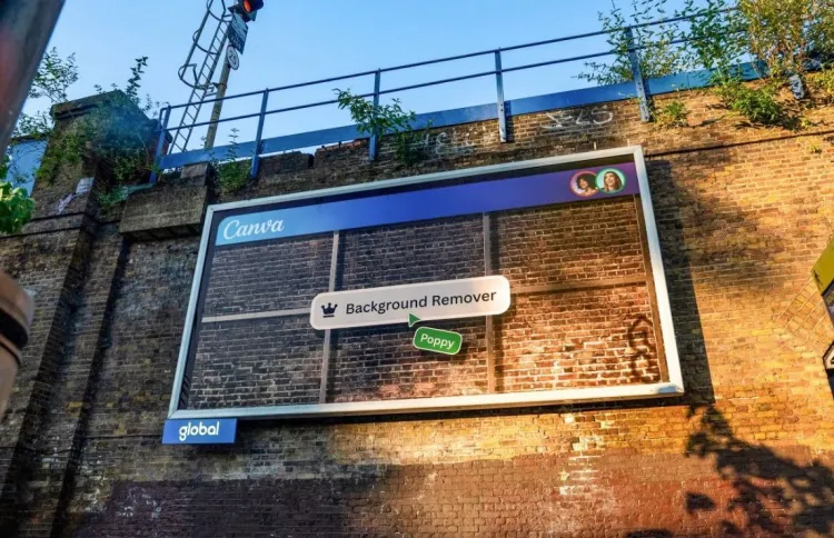 其中一块广告牌将canva的logo以超大字号放置在框架之外,用Brand Kit(品牌工具包)功能和轻描淡写的一句“还想放大logo吗?好像有点过头了哦”,不失礼貌地拒绝了对方logo调整的要求。