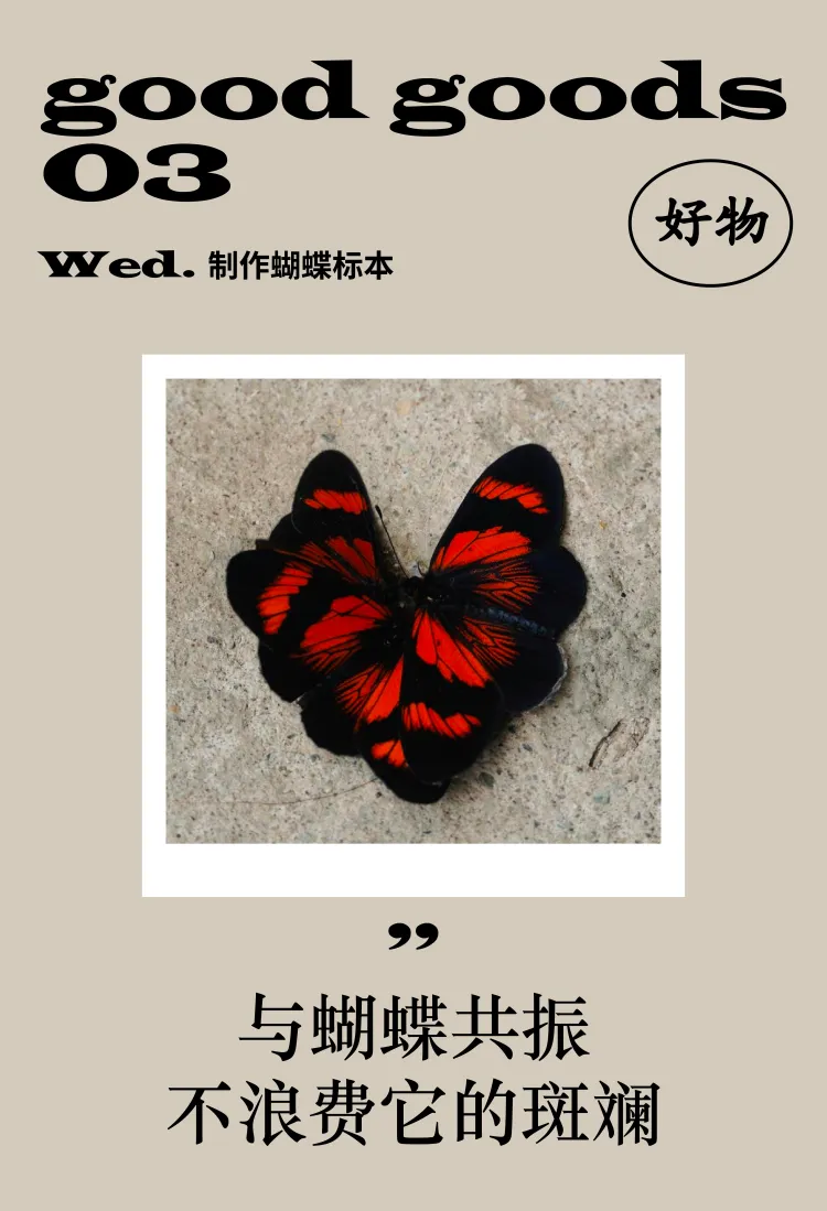 手指在光滑屏幕上滑动,在键盘、鼠标上敲击。我们的身体感知已随着肌肉记忆变成了一种被忽视的惯性。而制作蝴蝶标本便是跟这种惯性“对抗”,通过“触摸”重感现实,感受世界的一种纹路。