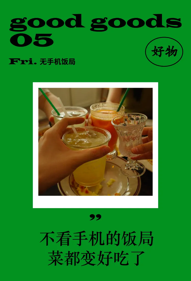 如果你也有这样的感受,下次聚餐玩个小游戏吧:把所有人的手机收进一个盒子,或干脆叠起来放在一边。设个小小的惩罚——谁先忍不住碰手机,谁请客。规则简单,“排毒”效果却很好。