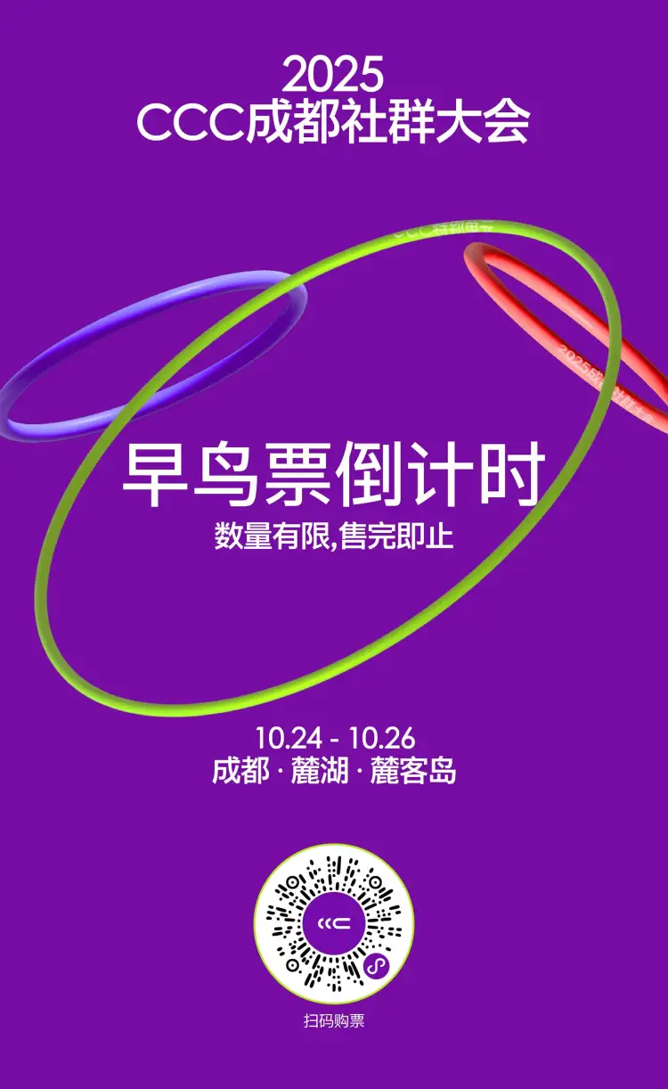当个体身份日益多元,如何精准链接彼此,将关系构建变成一门显性的生意?要突破范式,必先释放想象。2025 CCC成都社群大会,直面更务实的痛点,营造更松弛的场景,升级更具启发性的公众体验,重新探寻关系、创造、价值的无限组合。