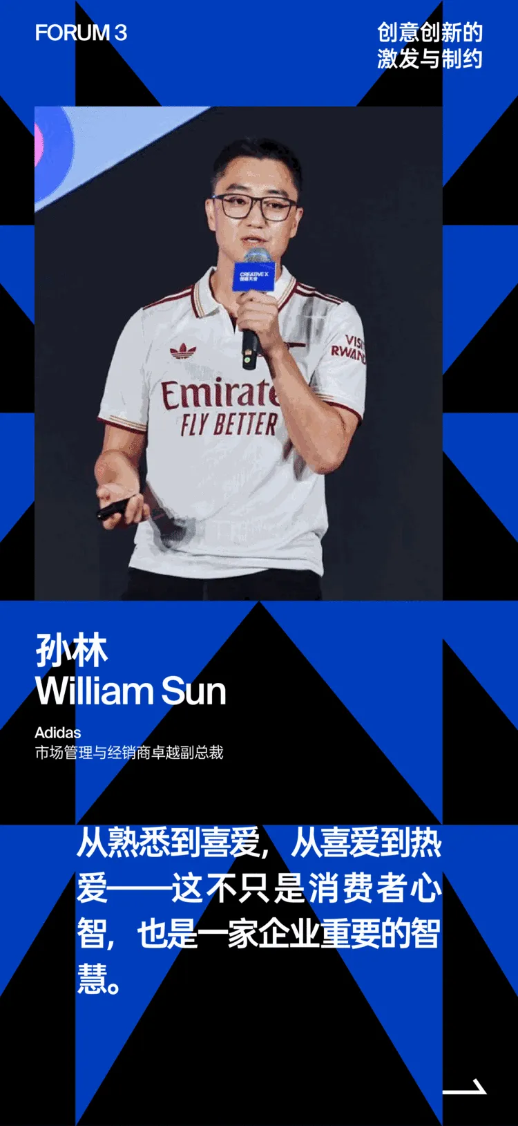 从事艺术收藏的周大为与Adidas市场管理和经销商卓越副总裁孙林,虽行业背景迥异,却同样分享了对商业创新的思考。周大为通过将艺术与潮流结合,推动艺术大众化;孙林则通过一系列本土化创新手段让国际品牌“入乡随俗”。他们的实践,本质上都是在突破行业与圈层的限制,探索更开放、更具适应性的商业可能。