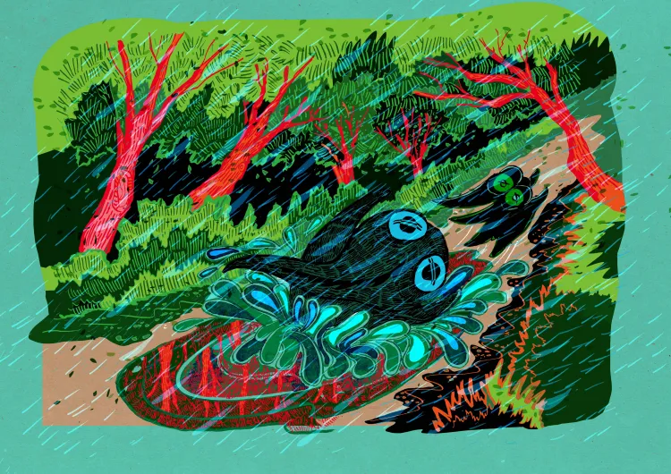 他们一家会在一起探索温布尔登公园时,构想出各种各样的故事,而Jae Kwak会将它们绘制成图画书讲给孩子们听。“puddle jumper”就是当中一个小动物角色。