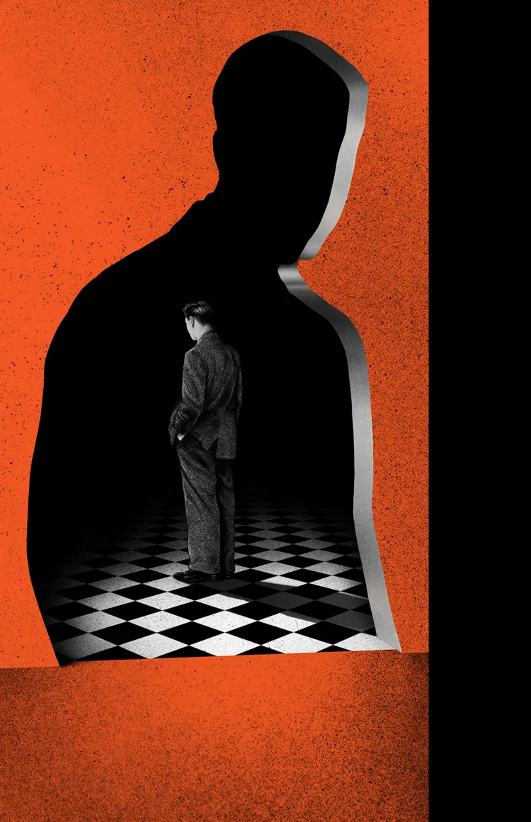 通过使用剪影镂空元素,搭配小场景的方式,插画师试图传递主角雷普利“身份套身份”的多元性,又借助一个人影来凸显他内心与外在的二元性。