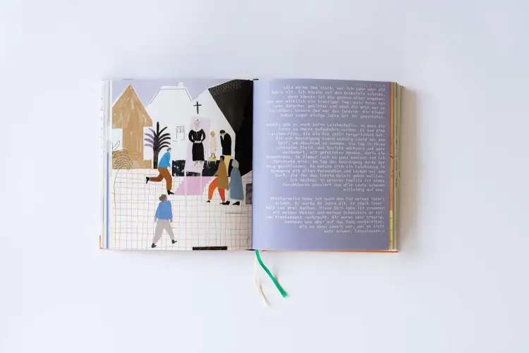Büro Wünsch和Stömer是一对来自德国的插画组合,医学教育是她们工作中很重要的一个主题。这本出版于2022年的《Schwellenangst》,便是一部讨论死亡与哀悼的作品。