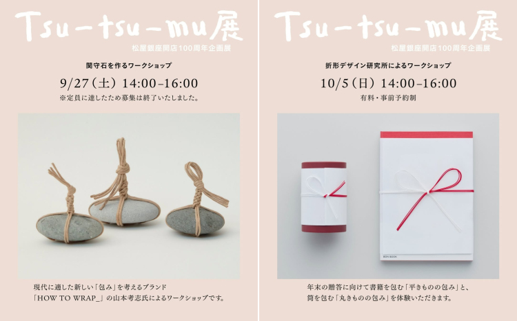 “Tsu-tsu-mu”是一个日语词汇,指将某物品包起来的动作。色部义昭发现,松屋银座会使用相同的包装纸将商品包起来供消费者带回。这便是此次展览主题的灵感源头。