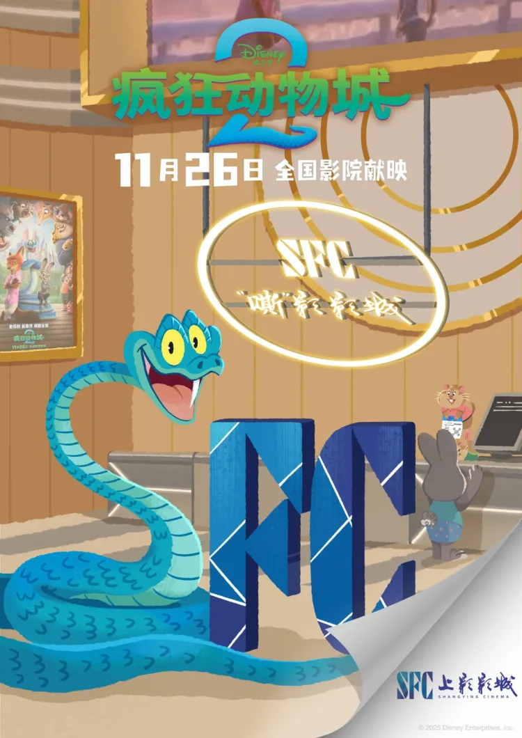 一向号称“地表最强法务部”的迪士尼,这次也算放飞,将谐音梗玩到了全国影院。虽然有些像烂梗,但抵不住它易于传播。横店影城由全片动作最慢的树獭“闪电”负责,改名“横电电影城”。
