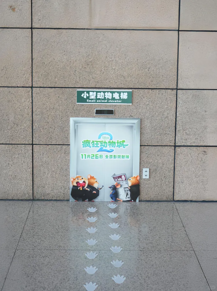 除了随地可见的动物立牌,机场还参考上海迪士尼的思路,设计了小型动物专用的迷你厕所与迷你电梯,虽然不是实景打造,但足以吸引乘客们驻足、拍照。