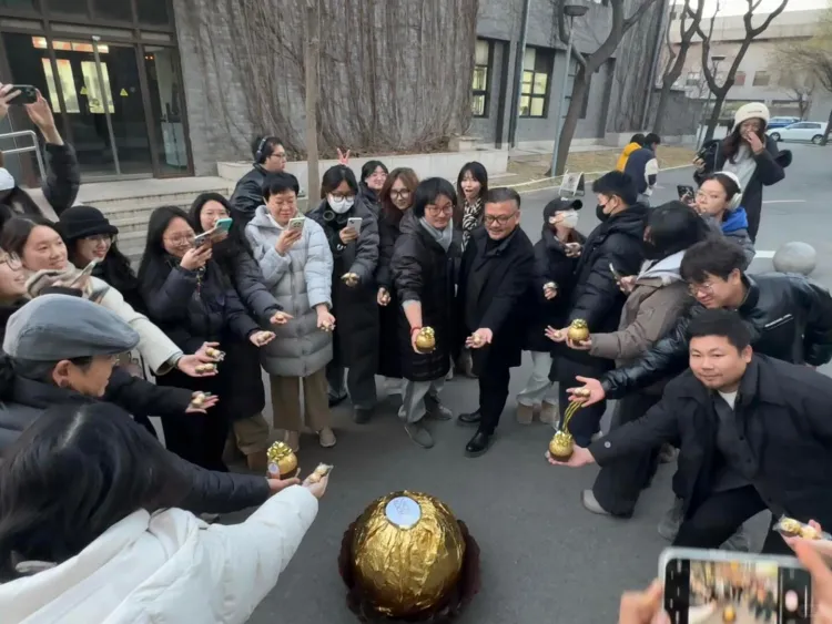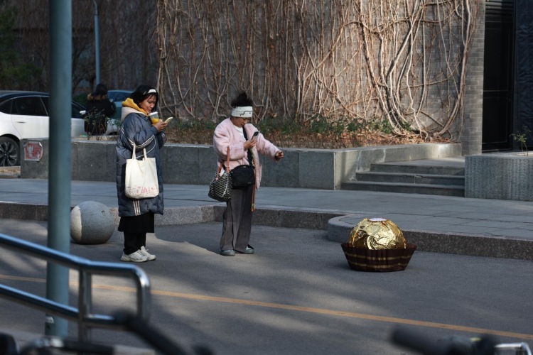 前段时间,很多人都刷到一组照片:路边再普通不过的石墩子,被包裹成一颗巨型费列罗巧克力。金色锡纸、圆润造型、比例夸张,引得人们纷纷拍照打卡,打趣这不是“费列罗”,而是“费力挪”。你以为这是品牌快闪,其实这只是央美雕塑系宁同学的一件课程作业。