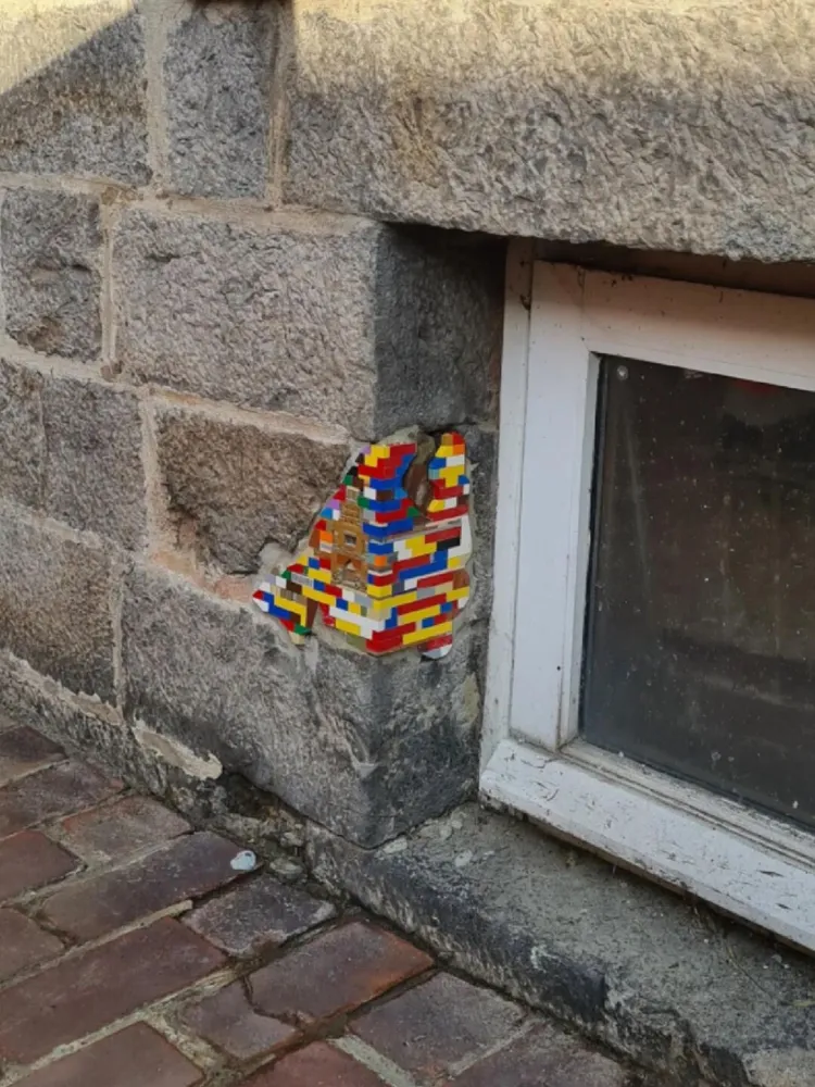 德国艺术家 Jan Vormann 的 Dispatchwork,从一次随意的观察开始。他注意到欧洲许多老建筑上布满裂缝、弹孔与缺损,这些痕迹记录着时间与历史,通常被视作需要修复的问题。Vormann 没有试图掩盖它们,而是把彩色乐高积木嵌进墙体之中。鲜艳的塑料与陈旧的石墙并置,显得突兀,却又意外地和谐。