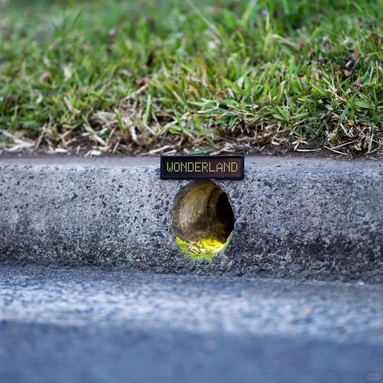 Michael Pedersen 则像是街头的剧场导演。他常常选择那些不起眼的地方,为它们赋予新的叙述。一个洞口可能被标记为“仙境入口”,一块苔藓成为“世界上最小的岛屿”。它们悄悄改变了人们的观看方式。当你意识到城市可以被这样重新命名,想象开始渗入现实,街道也像是在进行一场随时可能开始的排练。