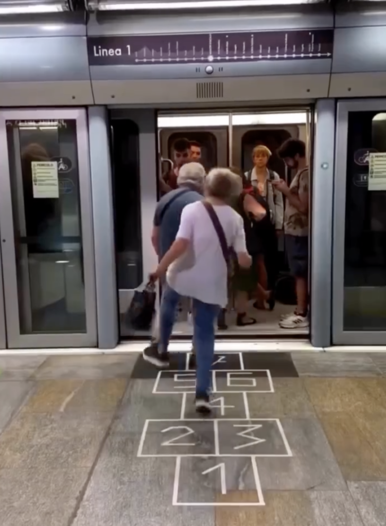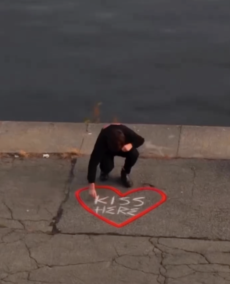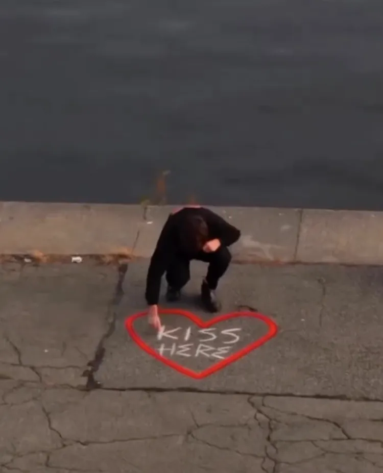 Greg Goya 的创作则把注意力放在人与人之间。他在街头写下简短的指令或邀请:“在此接吻”“跳房子”“道路是熔岩”。这些文字出现在街角、地铁口、斑马线。有人停下脚步,有人参与,有人只是微笑着路过。那些短暂发生的互动,让公共空间出现了一点松动。