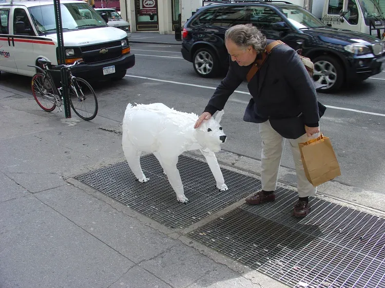 Joshua Allen Harris 的作品往往发生得更快,也更像一场错觉。街边看似被丢弃的塑料,在列车驶过时被地下气流托起,瞬间鼓胀成小熊、小狗,又在下一刻缓缓塌下。整个过程短得来不及反应,却足以留下印象。