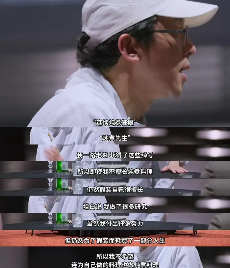 就在刚结束的决赛中,节目给出的命题是“只为自己做的料理“,选手需与两位评审同桌品尝并讲述这道菜的概念。相比上一季的“赌上名号的料理”,这个题目把更多的讲述空间留给了选手自己。