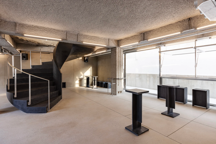 在繁华的梨泰院路口,他们建造了一栋四层楼高的建筑,并与建筑设计工作室Unravel联手进行重新设计建造。混凝土裸露的外立面透出简约大气的风格。空间总面积达到539平方米,包括一楼的咖啡馆和酒吧、二楼的黑胶唱片店以及三楼的Pop-up空间。