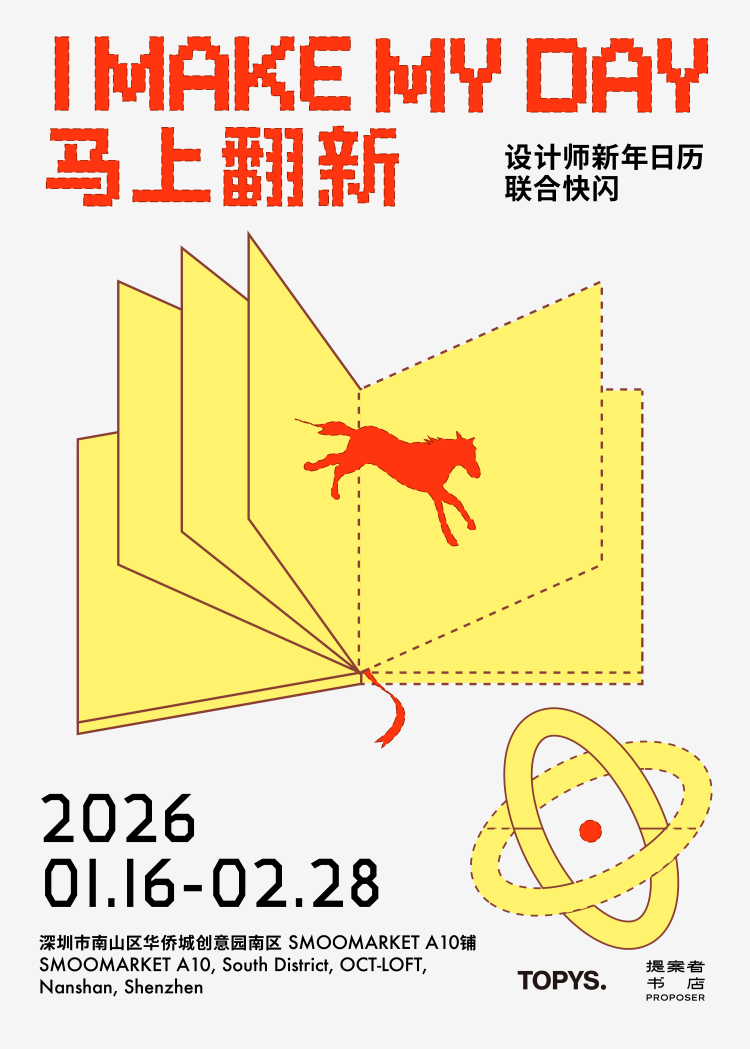 因此当2026准时到来,我们想和大家一起,积攒更多这样崭新而生动的时刻。这次,TOPYS邀请24位设计师,和PROPOSER提案者书店共同发起一次设计师新年日历联合快闪「马上翻新」。