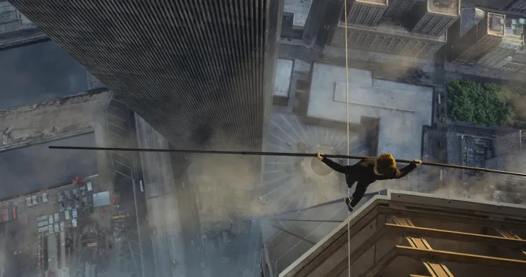 改编自法国杂技艺术家菲利普·帕特的真实经历,这位“疯子”在未经任何授权的情况下,完成了一件今天看来仍堪称壮举的事:在纽约世贸中心双子塔之间,拉起钢索,完成了一次惊心动魄的云中行走。纪录片《走钢丝的人》珠玉在前,电影版则通过特效,让观众多了许多身临其境之感。
