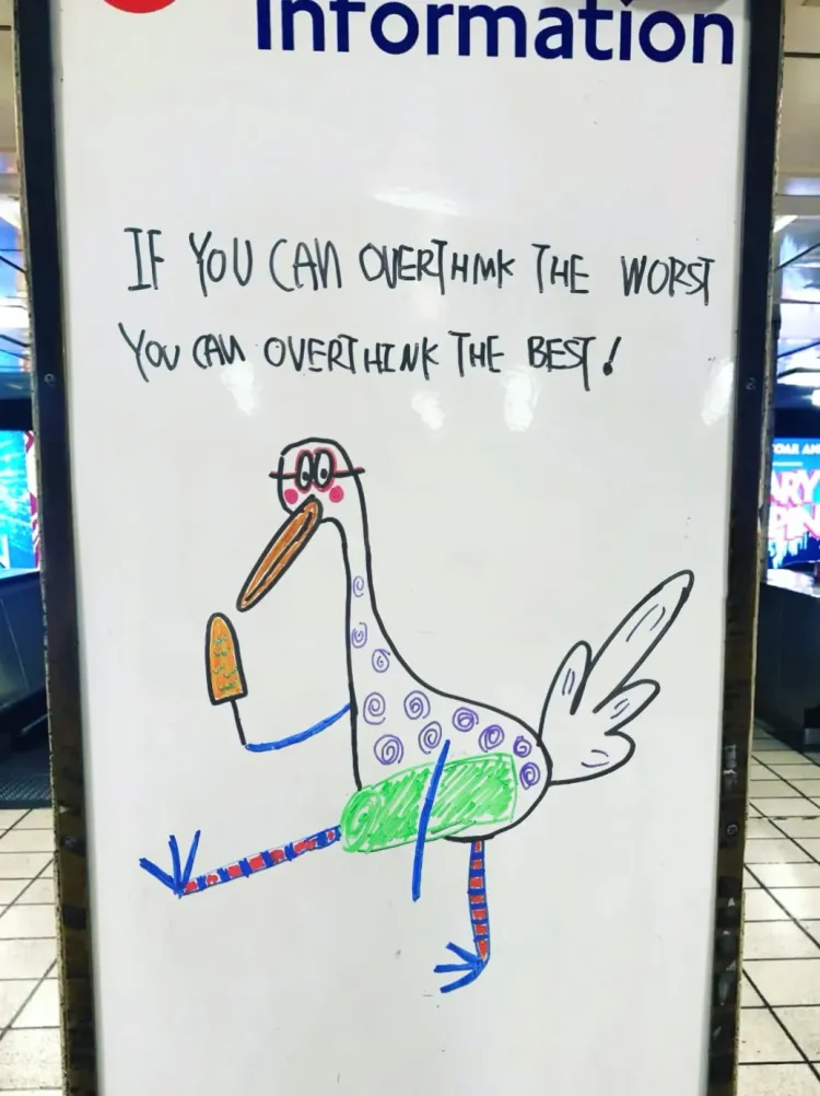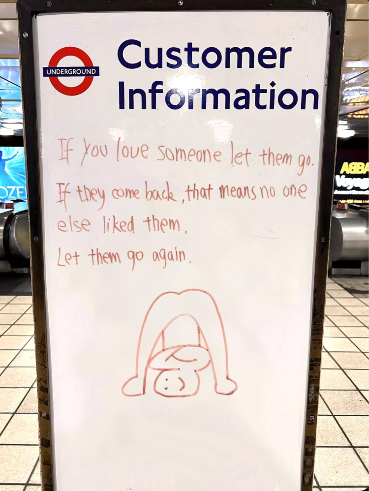 在伦敦,几乎每个地铁站都设有块白板。不用来发布官方通知,而是汇聚了路人随手写下的语录和涂鸦。