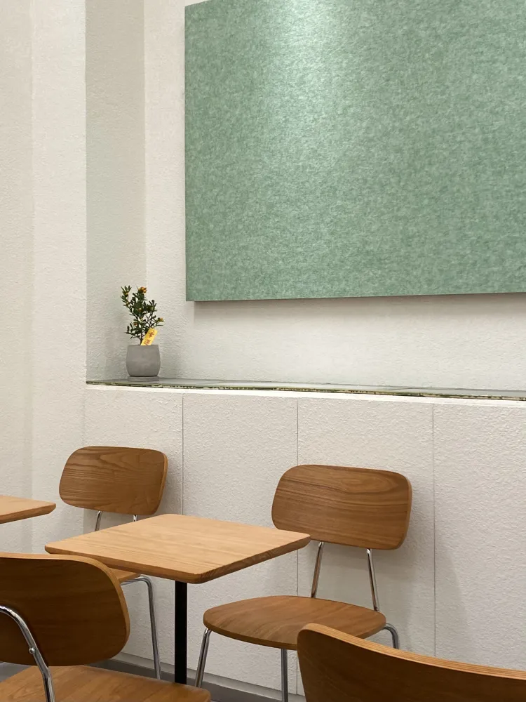 比如MORELIFE COFFEE和有待发现,都有一块纯色的画。在morelife,它是一块吸音板,用于降低背后高大空间的噪音。但在有待发现,这是块装饰板,板下标有logo,成为店内一个等待被发现的彩蛋。这种适度、克制却不失个性的风格,或许正就是华熙的个人语言。